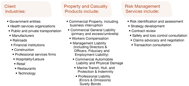 Because each client is unique, we employ a combination of tailored insurance coverage and risk